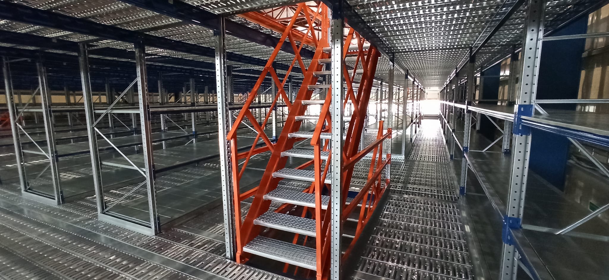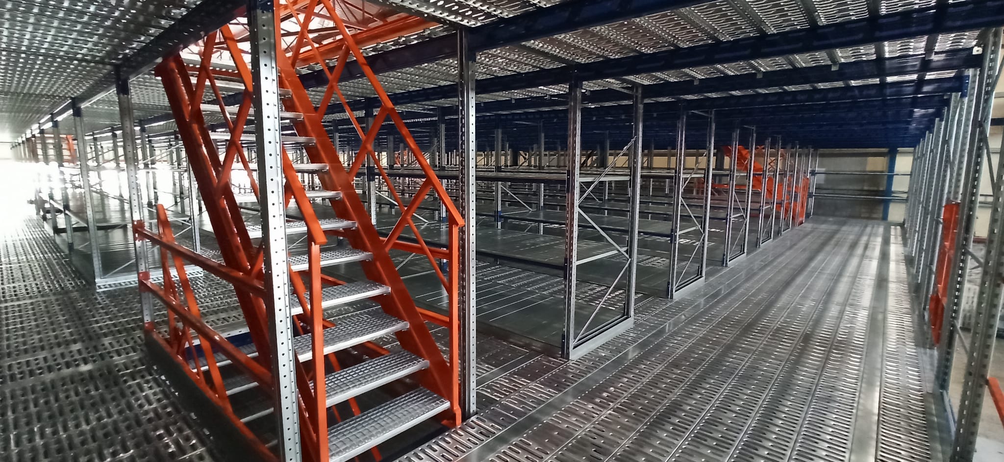 Сборка стеллажей Мезонин «MODERN EXPO» склад «Алми»